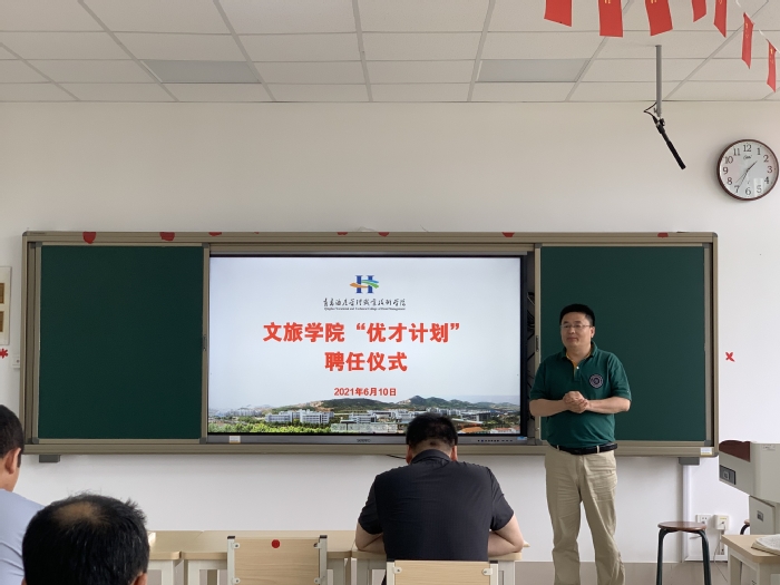 本网讯(文旅学院 刘芬)为推进“双高计划”建设工作,提升师资队伍建设水平,6月10日下午,文旅学院举办了“优才计划”聘任仪式。文旅学院管理团队及全体老师参加仪式。