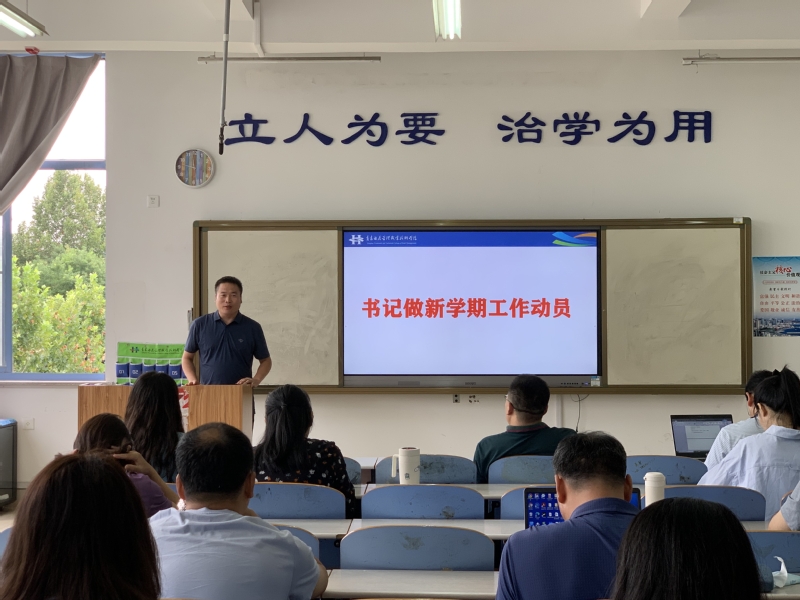文旅学院党总支书记王健做了新学期工作动员。他提出,新学期将通过对教师党支部、学生党支部的调整工作,强化党的建设和领导,继续推进党史学习工作,继续强化意识形态工作,做好价值观的正确传导,充分党员教师要做好模范带头作用。同时,要求全体教师共同努力、共同参与,落实学院十四五规划各项工作,共同打造幸福文旅。
