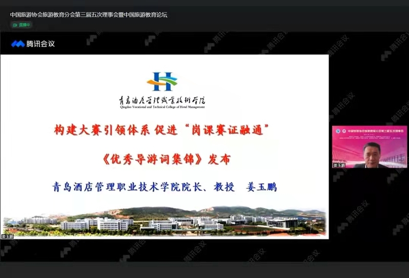姜玉鹏参加“旅游教育分会会长会议”并在大会上以《构建大赛引领体系建设 促进“岗课赛证融通”——《优秀导游词集锦》为主题对2021年全国旅游院校服务技能(导游服务)大赛的成果进行了发布。来自世界旅游联盟、教育部职业技术教育中心研究所、香港理工大学、澳门旅游学院、北京大学、中山大学、南开大学等机构、院校的领导、专家做了主旨演讲。