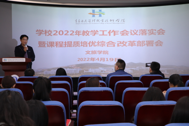 本网讯(文旅学院 杨安鸽)4月19日下午,文旅学院召开学校2022年教学工作会议落实会暨文旅学院课程提质培优综合改革部署会。学院副院长张宗国 、教务处处长于进亮、马克思主义学院副院长李瑶出席会议。